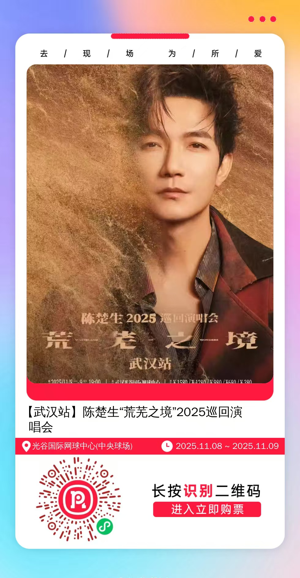 购票提醒:直接打开左侧海报(鼠标移动到海报上,右键选择“在新标签页打开图片”),用手机打开微信扫描海报中的二维码,扫描之后手机登录即可购票。如有疑问,可加微信cary7790咨询,下单后全程跟单,跟进一切关于门票的问题。