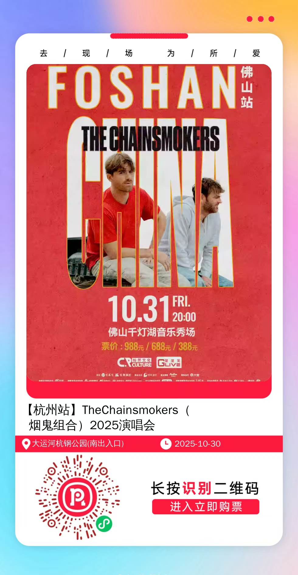 购票提醒:直接打开左侧海报(鼠标移动到海报上,右键选择“在新标签页打开图片”),用手机打开微信扫描海报中的二维码,扫描之后手机登录即可购票。如有疑问,可加微信cary7790咨询,下单后全程跟单,跟进一切关于门票的问题。