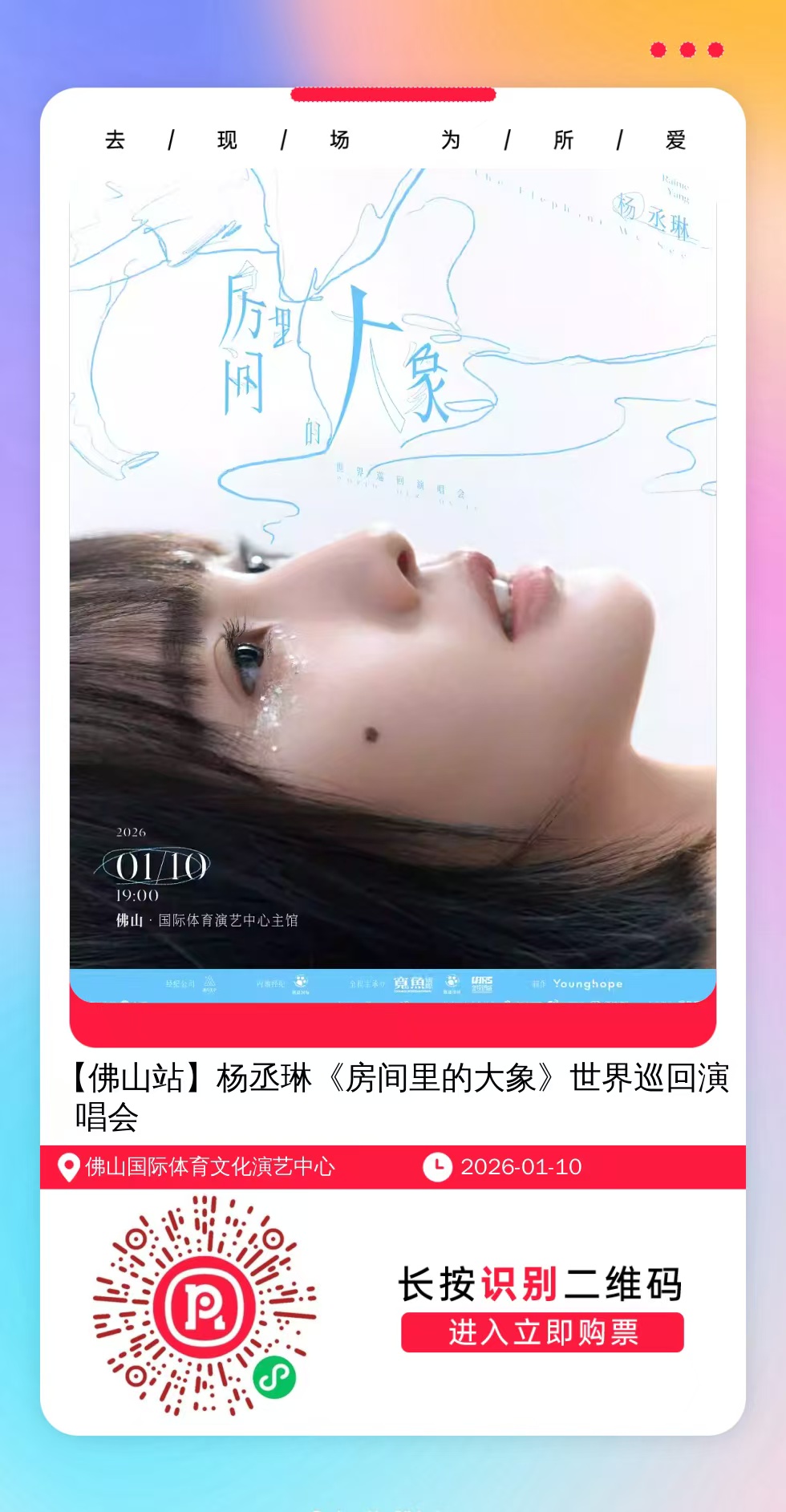 购票提醒:直接打开左侧海报(鼠标移动到海报上,右键选择“在新标签页打开图片”),用手机打开微信扫描海报中的二维码,扫描之后手机登录即可购票。如有疑问,可加微信cary7790咨询,下单后全程跟单,跟进一切关于门票的问题。
