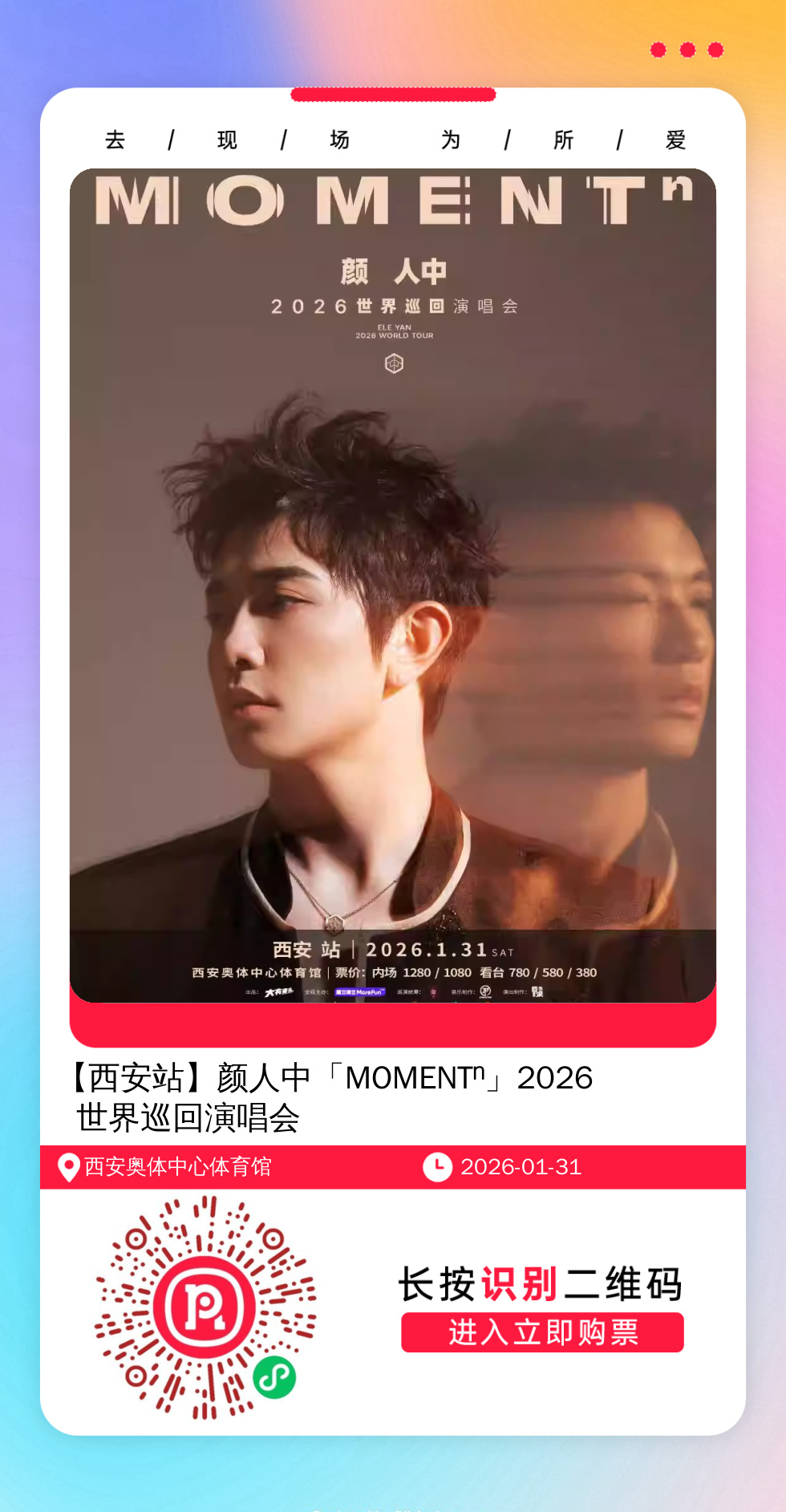 购票提醒:直接打开左侧海报(鼠标移动到海报上,右键选择“在新标签页打开图片”),用手机打开微信扫描海报中的二维码,扫描之后手机登录即可购票。如有疑问,可加微信cary7790咨询,下单后全程跟单,跟进一切关于门票的问题。