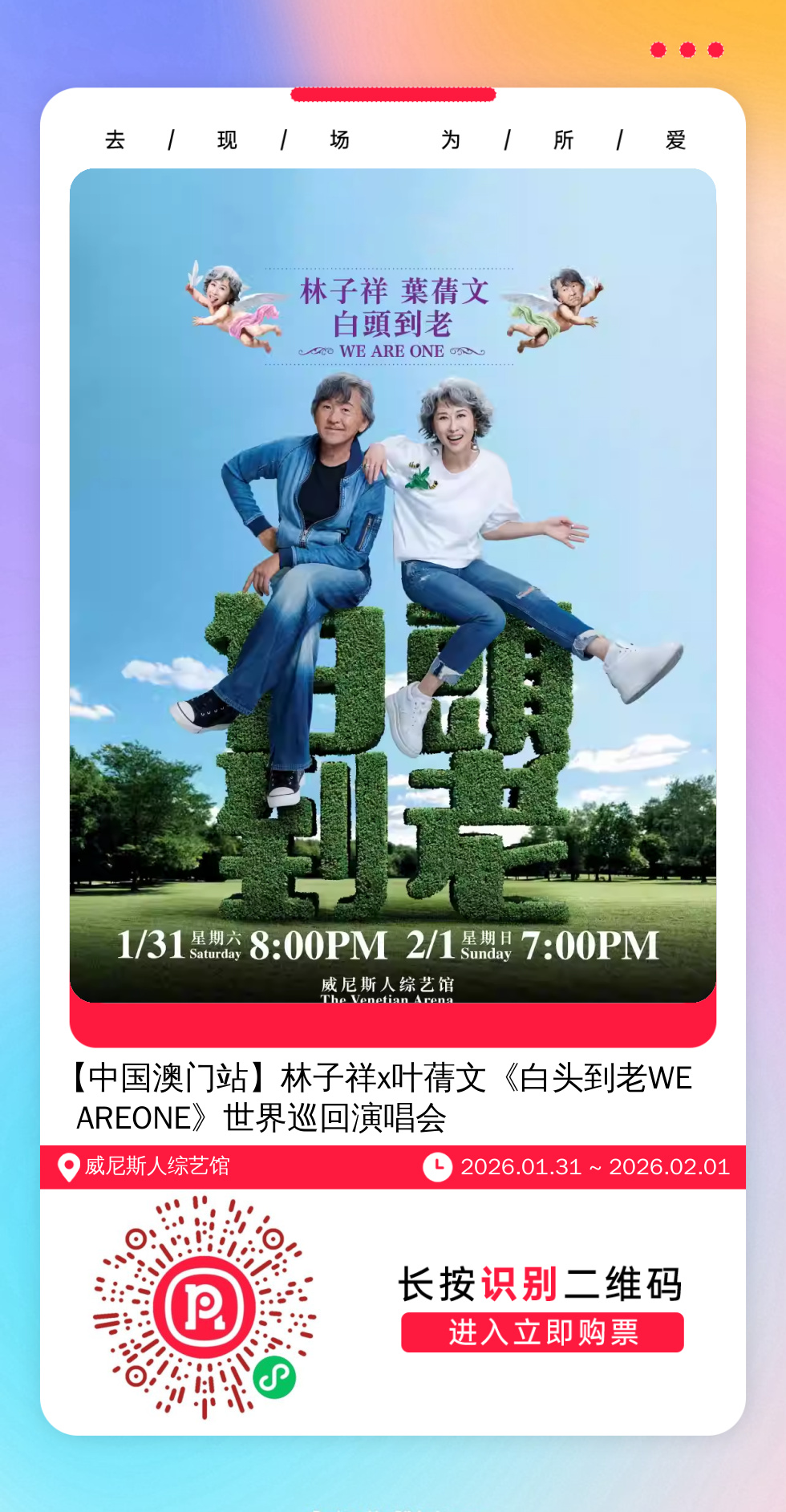 购票提醒:直接打开左侧海报(鼠标移动到海报上,右键选择“在新标签页打开图片”),用手机打开微信扫描海报中的二维码,扫描之后手机登录即可购票。如有疑问,可加微信cary7790咨询,下单后全程跟单,跟进一切关于门票的问题。