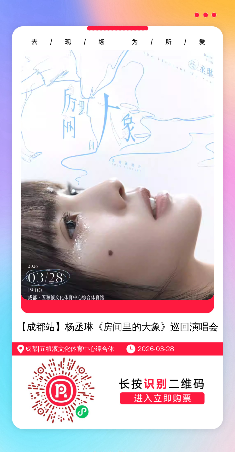 购票提醒:直接打开左侧海报(鼠标移动到海报上,右键选择“在新标签页打开图片”),用手机打开微信扫描海报中的二维码,扫描之后手机登录即可购票。如有疑问,可加微信cary7790咨询,下单后全程跟单,跟进一切关于门票的问题。