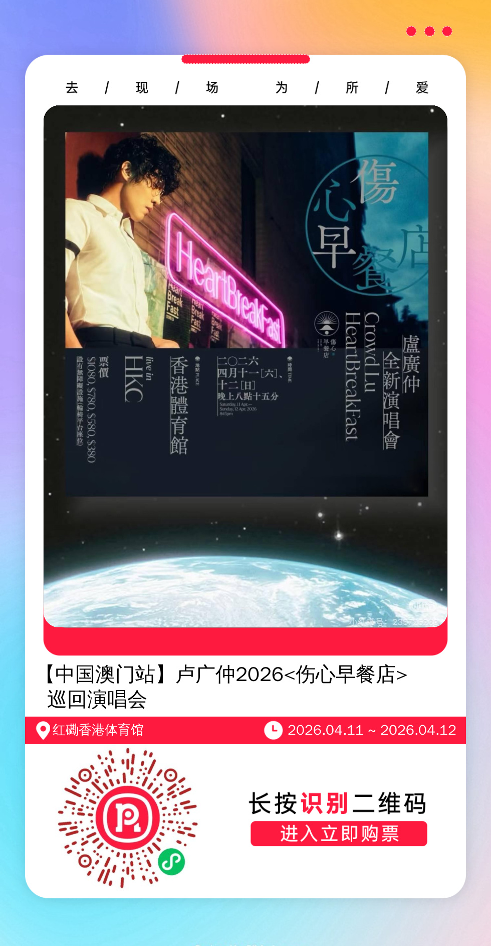 购票提醒:将左侧海报保存至手机,打开微信扫一扫,选择手机相册中保存的海报,扫描之后手机登录即可购票。如有疑问,可加微信cary7790咨询,下单后全程跟单,跟进一切关于门票的问题。