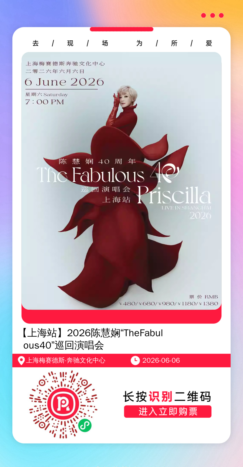 购票提醒:直接打开左侧海报(鼠标移动到海报上,右键选择“在新标签页打开图片”),用手机打开微信扫描海报中的二维码,扫描之后手机登录即可购票。如有疑问,可加微信cary7790咨询,下单后全程跟单,跟进一切关于门票的问题。