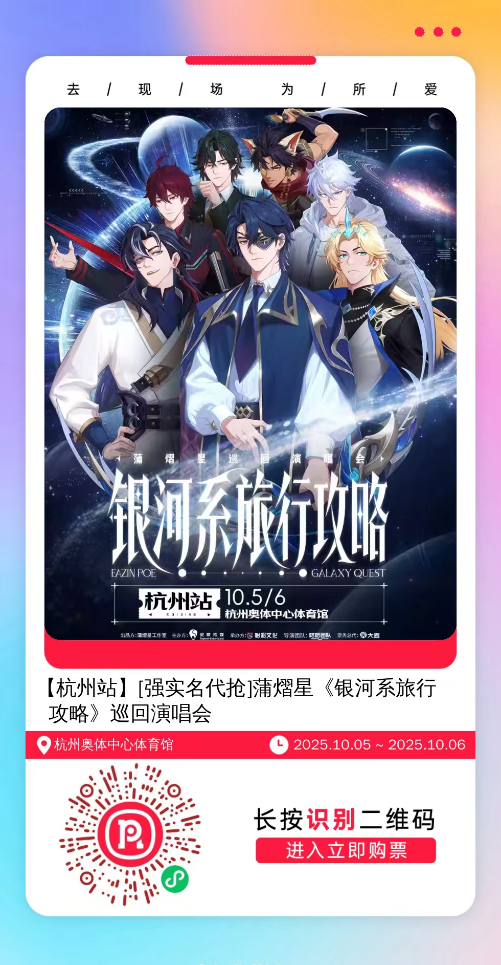 购票提醒:直接打开左侧海报(鼠标移动到海报上,右键选择“在新标签页打开图片”),用手机打开微信扫描海报中的二维码,扫描之后手机登录即可购票。如有疑问,可加微信cary7790咨询,下单后全程跟单,跟进一切关于门票的问题。
