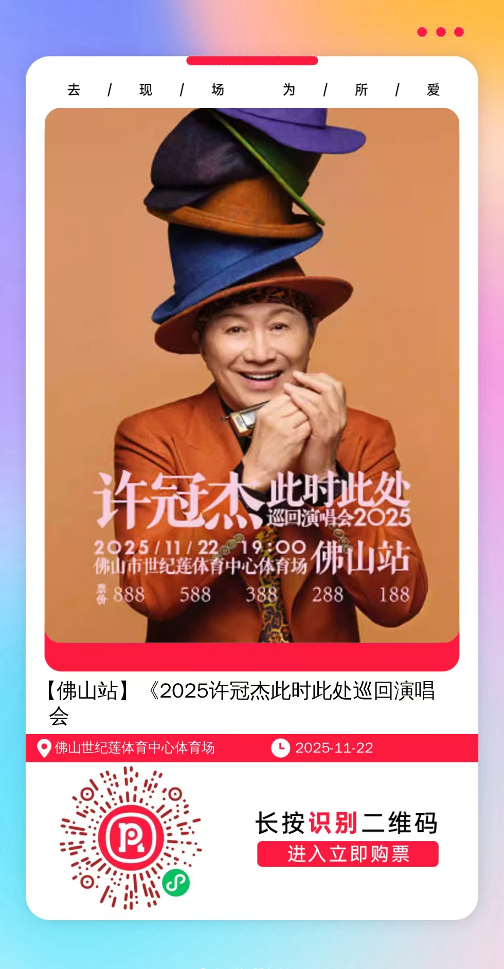 购票提醒:将左侧海报保存至手机,打开微信扫一扫,选择手机相册中保存的海报,扫描之后手机登录即可购票。如有疑问,可加微信cary7790咨询,下单后全程跟单,跟进一切关于门票的问题。