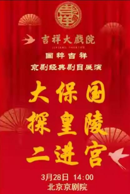【北京站】吉祥大戏院3月28日(午场)京剧《大保国·探皇陵·二进宫》国粹吉祥系列展演